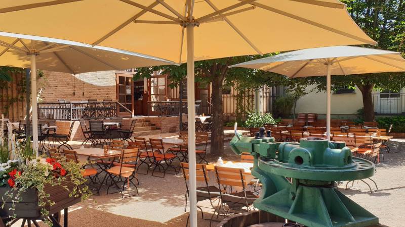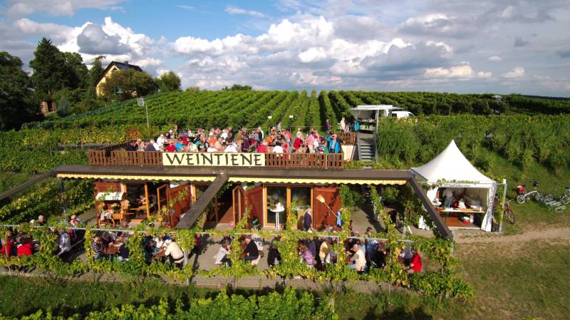Mitten auf dem Weinberg steht die urige Straußwirtschaft vom Weinbau Dr. Lindicke. Der renommierte Winzer bietet hier neben saisonalen Weinausschank selbsterzeugter Weine auch regionale Spezialitäten an.