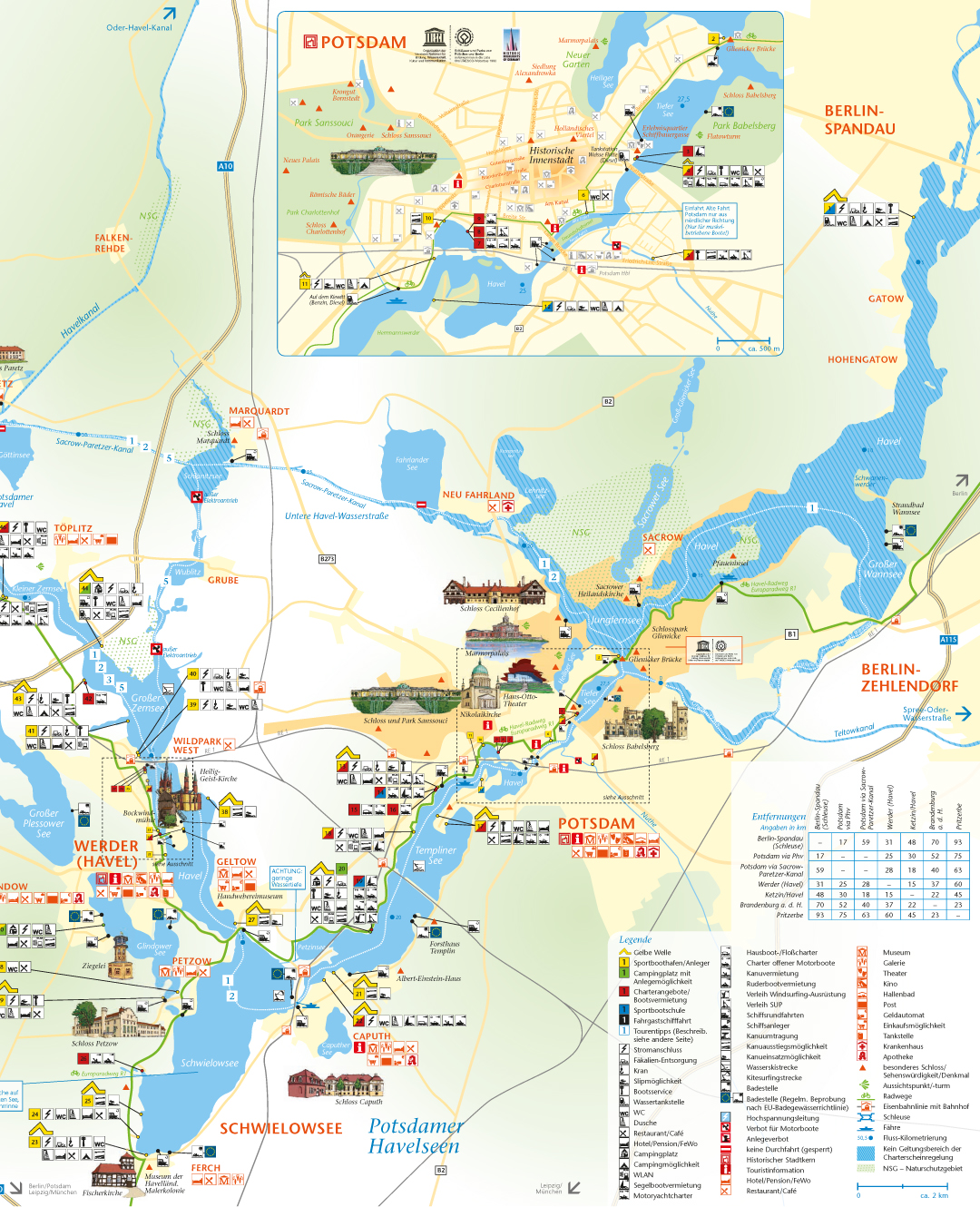 Leinen los und Schiff ahoi – das Revier der „Potsdamer und Brandenburger Havelseen“ ist Teil des „Blauen Paradieses“, Europas größtem zusammenhängenden Wassersportrevier zwischen Elbe und Oder, Ostsee und dem Spreewald. Und Werder ist mittendrin. Auf einer Gesamtlänge von rund 180 Kilometern bietet der Flusslauf der Havel mit mehr als 40 Seen, Kanälen und Havelarmen wunderschöne Möglichkeiten für einen Urlaub mit dem Boot. Ob unter Segeln, an Bord eines Motorbootes oder mit dem Kanu dem Wasser ganz nah – hier kann jeder seine individuelle Bootstour genießen.